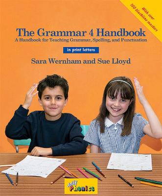 The Grammar 4 Handbook follows on from The Grammar 3 Handbook. It provides a full year’s worth lessons for teaching grammar, spelling and punctuation to children aged 8+. It provides: * Practical advice and ideas for teaching * Step-by-step lesson plans and notes for the teacher *Continues to introduce new grammar elements * 36 structured grammar and punctuation lessons * 36 spelling lessons * Revision and extension of The Grammar 3 Handbook * Photocopiable activities * Fun actions for the grammar points Topics covered include: * Nouns acting as concrete/ abstract/possessives * The present participle as an adjective * Onomatopoeia * Agreements ? * Clauses/independent clauses ? * Hyphens? * Sentence writing – statements and questions, compound sentences? * Parsing verbs * Infinitives * Antonyms and Synonyms * Homophones